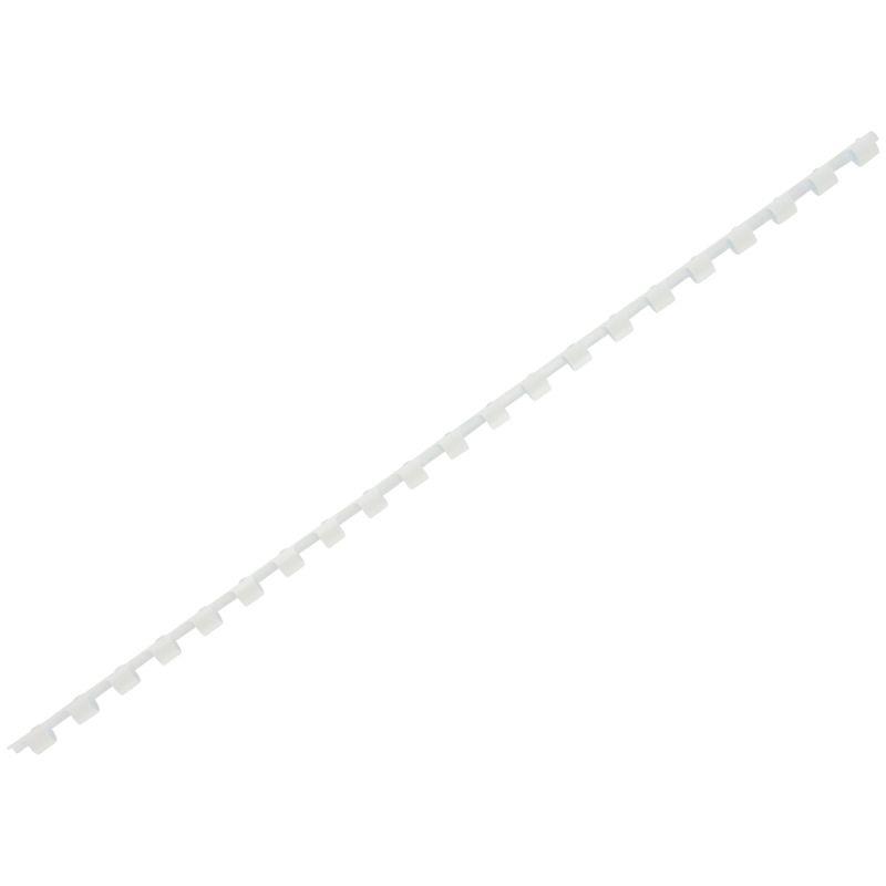 Bo?te de 100 reliures plastiques couleur ?? 6mm blanc. 21 anneaux. Longueur 30cm. Capacit? 20 feuilles. Pour relier tous documents A4 (21×29,7cm).